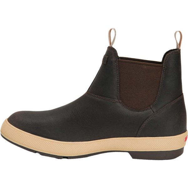 Ready for most any season. weather or occasion. The Legacy Leather Chelsea is a versatile boot that delivers performance for those moments off-the-water; mending nets. maintaining engines or general daily wear. This leather version of the beloved Legacy Boot is crafted of saltwater resistant leather that will wear to a fine patina. Built for coastal adventures on and off the boat this lightweight silhouette features the same non-marking. slip resistant Chevron outsole as the Classic Legacy Boot worn by commercial fishermen for decades. Built to be 100% waterproof. this collection of work boots provides wearers with class leading traction. comfort. and protection.